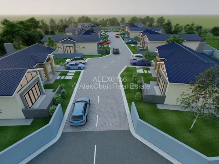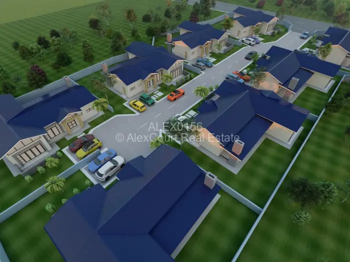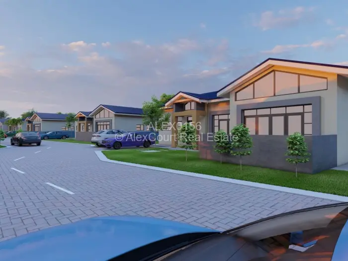 Modern Cluster Homes, complex of 8 of brick under chromadeck roof covering.